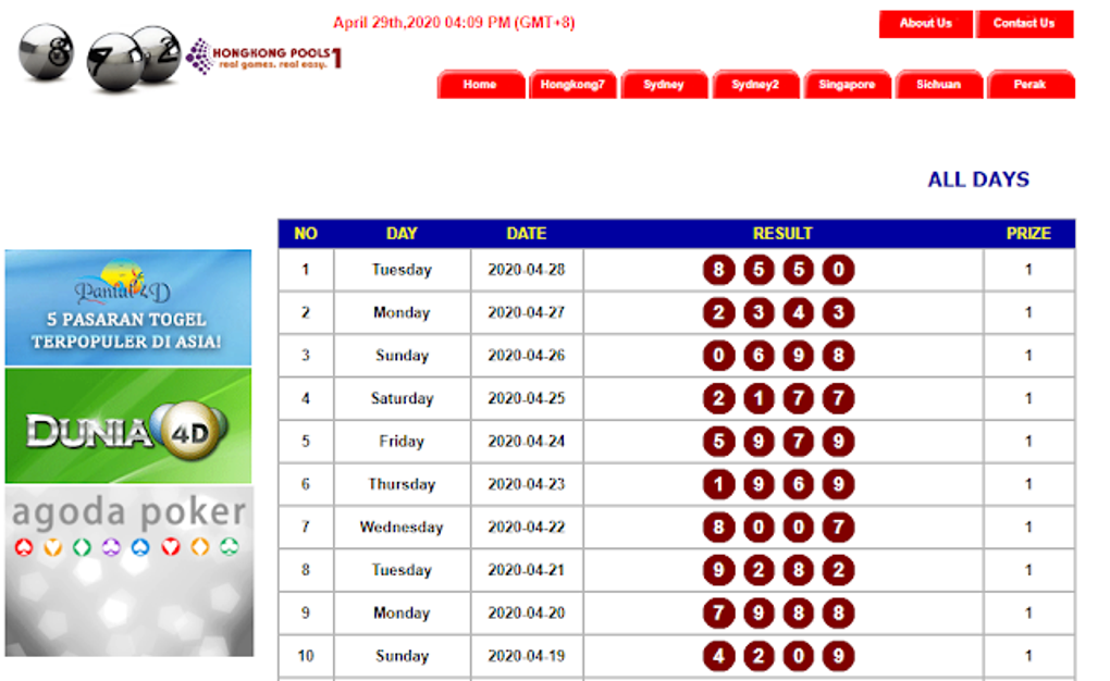 Kunjungi situs resmi togel hongkong togel singapore hari ini yang menyediakan hasil data keluaran sgp hk pool terupdate setiap harinya.. Togel Singapura dan Hongkong Prediksi Nomor Hari ini yang Online. Saking banyaknya penggemar togel online, kini bermunculan Togel Online. Kesempatan ini dimanfaatkan oleh para agen atau bandar untuk. Togel Hongkong - Togel Singapore - Togel Hari Ini - Keluaran Data HK SGP Prize. Selamat datang disalah satu situs penyedia hasil angka keluaran hk prize, dan juga angka keluaran sgp prize terupdate tercepat terakurat, yang berasal dari dari situs resmi singapore prize dan juga hongkong prize untuk pasaran togel hari ini yaitu togel singapore hari ini, serta togel hongkong hari ini.
