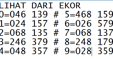 Mulai sejak angka empat (4) ini kita naikkan jadi setingkat (4,5) permulaan kedua angka itulah dapat kita jadikan angka jitu Rumus Togel Hongkong 3D tengah malam ini. kedua angka itu ke luar nya dapat bergantian, seandainya senin kemaren nomer anggaran nya bagi bidang kiri, maka senin tengah malam ini keluarnya tentu sektor kanan. 6+6 =12= 3,. RUMUS HKG DIAMBIL DARI JUMLAH 2D JLH 0 = 1278 AI JLH 1 = 1267 AI JLH 2 = 0456 AI JLH 3 = 1267 AI JLH 4 = 1278 AI JLH 5 = 0389 AI JLH 6 = 0349 AI JLH 7 = 0349 AI JLH 8 = 0389 AI JLH 9 = 1278 AI RUMUS HKG DARI SELISIH 2D (K-E) JADI HARUS KONTROL K-E = ANGKA ? 0 = 345678 1 = 456789 2 = 567890 3 = 678902 4 = 789013 5 = 890124 6 = 901235 7 = 012346